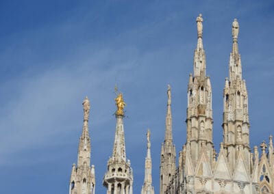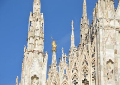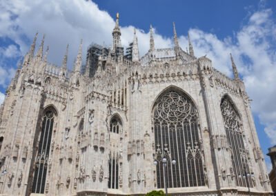 Hjarta og miðja Mílanó er við dómkirkjuna. Allt frá 4. öld var svæðið sem dómkirkjan stendur á þungamiðja trúarlífs – þar stóðu áður kirkjur er voru mölvaðar niður til að útbúa pláss fyrir hina nýju glæstu kirkju og torgið umhverfis hana. Hægt er að fara upp á þak kirkjunnar og fara má upp með lyftu eða ganga þröngan steinlagðan hringstiga. Fallegt er að svipast um þar við sólarlag, auk útsýnisins yfir borgina er þessi kirkja skreytt styttum og súlum hvert sem litið er.