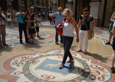 Þetta mannvirki er glæsileikinn uppmálaður, stendur við hlið Scala óperunnar og dómkirkjunnar á besta stað í bænum og hefur verið kölluð móðir allra verslunarmiðstöðva sem skilst alveg þegar komið er á staðinn. Þrátt fyrir að við liggi að byggingin sjálf sé gullslegin og þar inni séu verslanir sem selja hátískuvörur þá má samt skemmta sér við að skoða skreytingar á gólfum og loftum og veggjum; fá sér ís og kaffi.