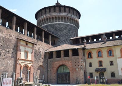 Það er margt að sjá í Mílanó – Sforzesco kastalinn (Castello Sforzesco) var upphaflega höll í eigu tveggja ætta, Visconti- og Sforza sem byggð var árið 1368. Á þeim tíma var svæðið umhverfis óbyggt og þakið skógi. Höllinni var breytt í virki sem svo var stækkað á 15. öld upp í kastala. Hann var svo stuttu síðar gerður að undurfallegri hertogahöll – sem stóð þó ekki lengi sem slík því hún var að hluta eyðilögð árið 1447.