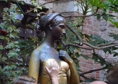 Við förum með rútu til hinnar fallegu borgar Verona, þar má meðal annars líta hina einu sönnu Júlíu augum en saga hennar og Rómeós gerist þar. Við kíkjum á hús Júlíu þar sem Rómeó söng til ástarinnar sinnar undir svölunum. Við göngum um fallegar götur, sjáum ævafornt hringleikahús frá tíð Rómverja og förum um göng kastalans við ána.